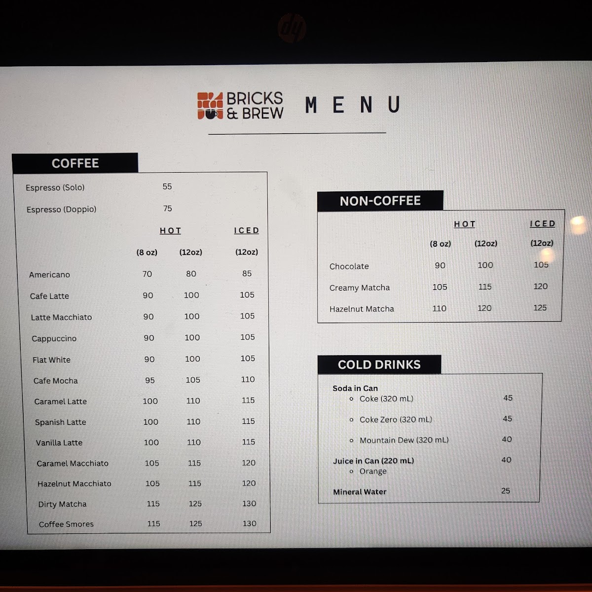 Bricks & Brew Menu